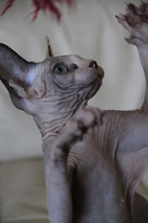 Yesterday we collected our new Sphynx kitten, she is registered as Onaturel Shabby Chic but as yet we haven't decided on a suitable pet name, obviously we are looking for a name that fits in with the classy cat names we already have, such as Sybil, basil and Gary:-) and ideally will have some sort of reference to her lack of hair. Update: we now have a name, she is Lady Godiva or Diva for short.